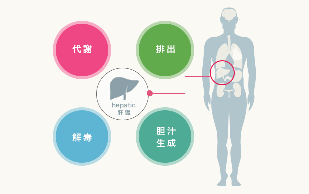 肝臓は腹部の右上に位置し、人体内で最大の臓器です。肝臓は、「代謝」「排出」「解毒」「胆汁生成」など、生きていくために重要な役割を担っており、特に酵素の働きによる分解機能は一般にもよく知られています。再生能力が強く、損傷などがあっても症状に現れにくく、「沈黙の臓器」とも呼ばれています。