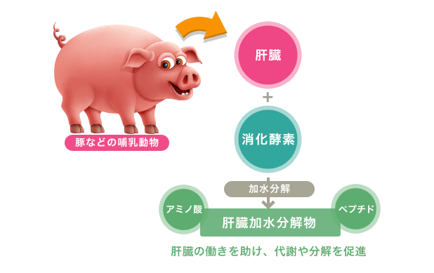 現在、話題になっている肝臓加水分解物とは、豚などの哺乳動物の肝臓に消化酵素を加えて、加水分解したもので、肝臓エキスともいいます。肝臓加水分解物はアミノ酸やペプチドを多く含んでいます。