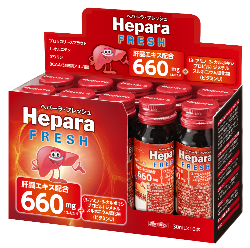 楽しく飲みたい方、女性の方にも飲みやすいオリジナル清涼飲料水「ヘパーラ・フレッシュ」をみなさん是非お試しください。